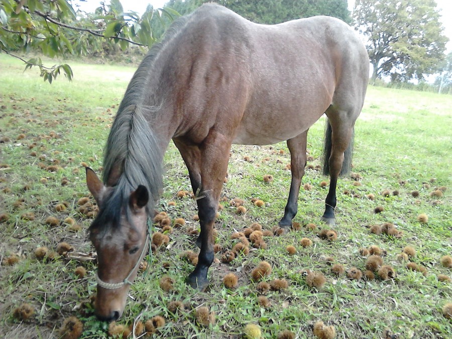 Cet AM pluie à drache, j'ai juste curé la stabu de Lotus, ensuite pansage, câlins, bisoux, on a un peu discuté avec les filles, puis cueillette de branchages pour Oskar, ensuite curage de box.
