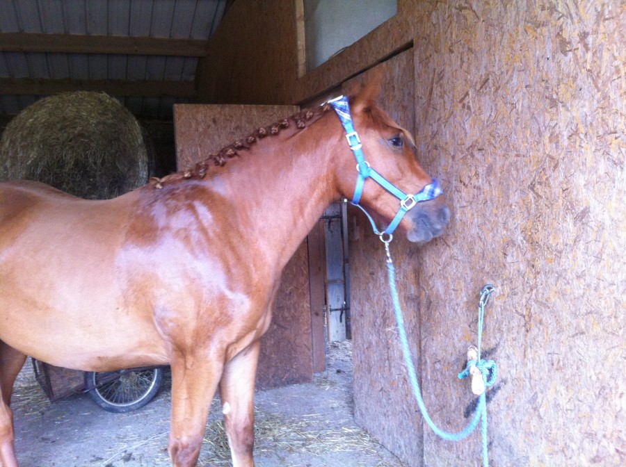 On scotche la queue un peu pour des raisons esthétiques (les crins deviennent moches quand ils sont mouillés) et aussi pour permettre d'évacuer mieux la chaleur.