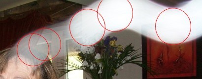 En traficotant un peu la photo (luminosité, contraste) je vois bien cinq cercles... Après, orbes ou pas orbes... En tout cas c'est bizarre...