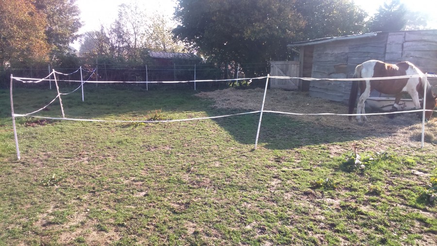 le paddock de fortune de ma grosse que j'ai fais cet aprem. Elle n'a pas bougé d'endroit depuis ce matin, cela me rassure un peu !