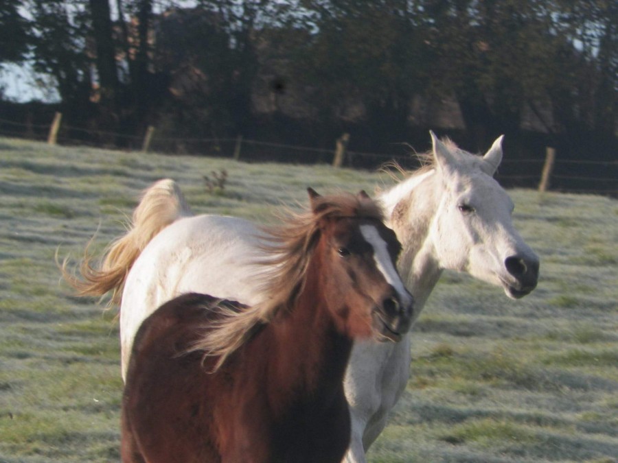 Coucou ! Ici on est à seulement 4 mois pfff ! Pour les 2 elles se suivent de très peu ! Pour passer le temps j'ai fait le test du clou , ça me dit un mâle pour ma ponette et une femelle pour ma pur sang arabe ! Je n'y crois pas mais on verra lol ! La première photo c'est ma ponette et mon arabe et la deuxième juste mon arabe ( toutes les 2 en mode grosse peluche )