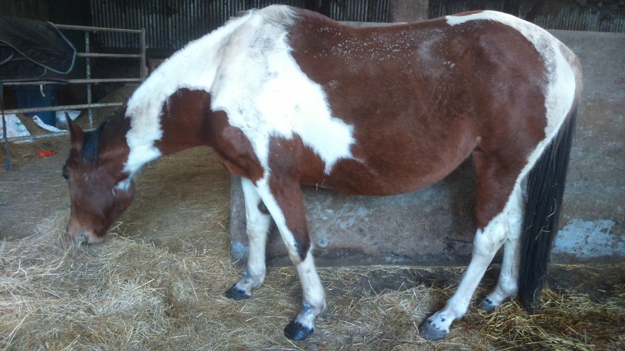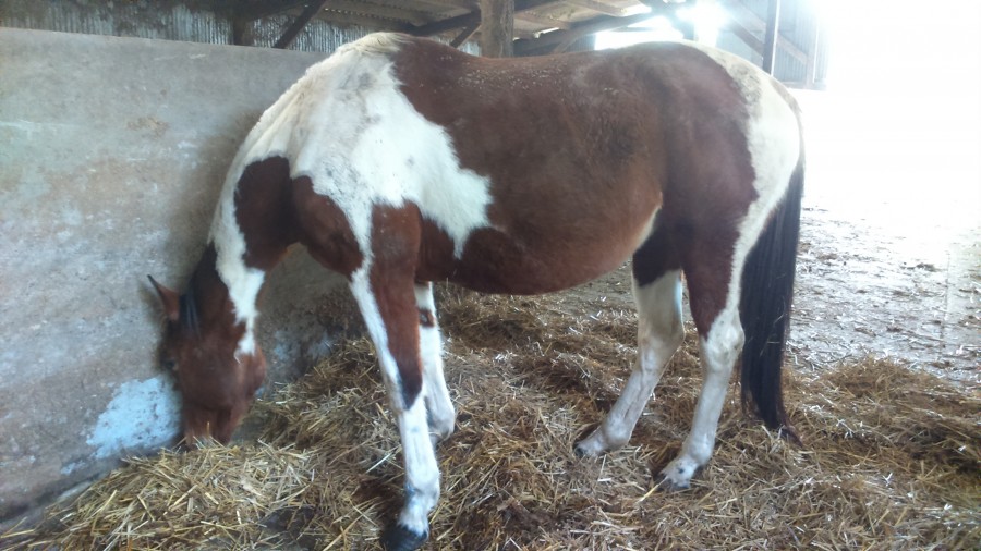 Hélite, pouliche pie minimal bai née le 10/04 à 2h30 Décédée le 14/04
