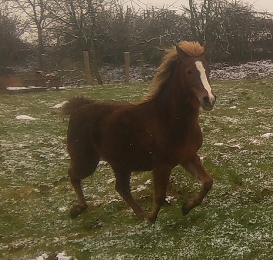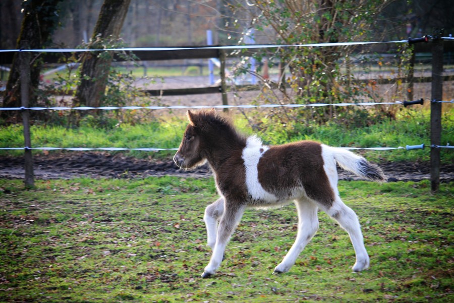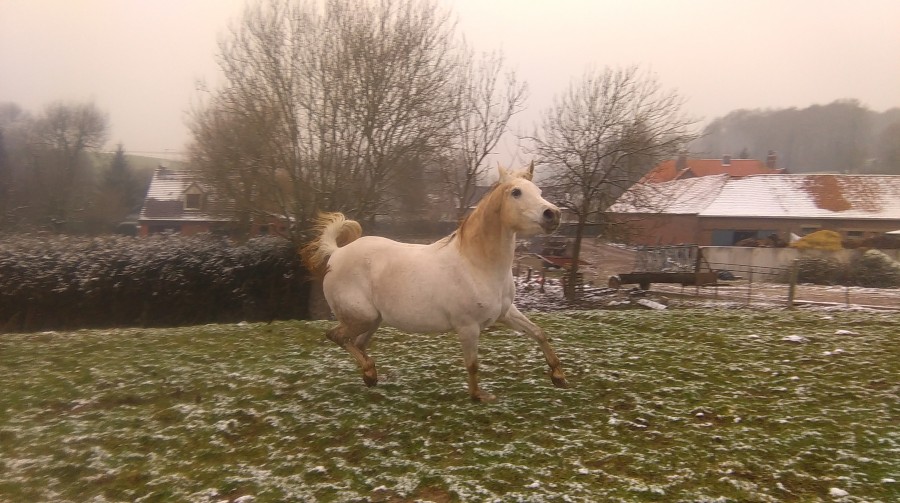 Ici Happy s'approche doucement de ses 2 mois. Ce qui est certain c'est qu'un poulain d'hiver n'évolue pas du tout comme un poulain de printemps ou d'été mais elle va très bien et grandi bien. Pleine de vie et d'energie, c'est un régale de s'occuper d'elle tous les jours.