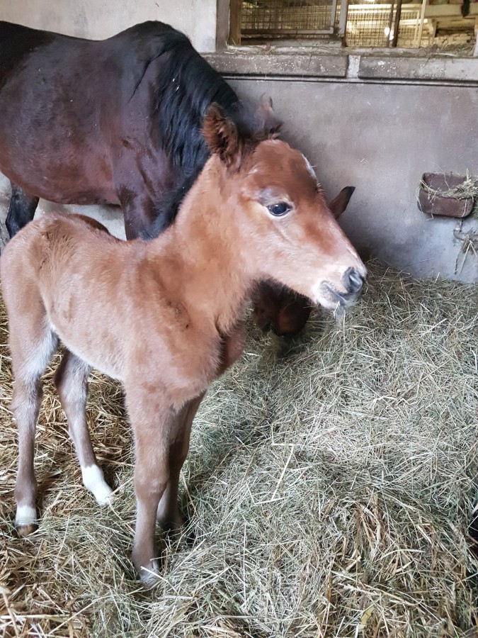 Hurlevent de Beaumon poulain bai brun né le 04/03 vers 2h du matin.