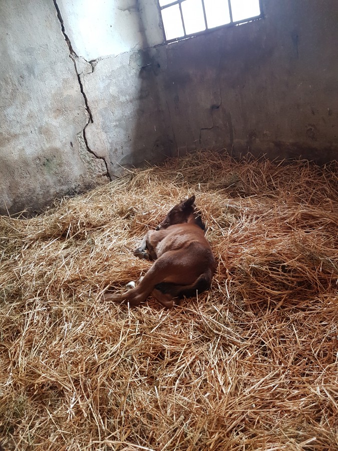 Hélite, pouliche pie minimal bai née le 10/04 à 2h30 Décédée le 14/04