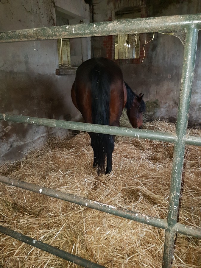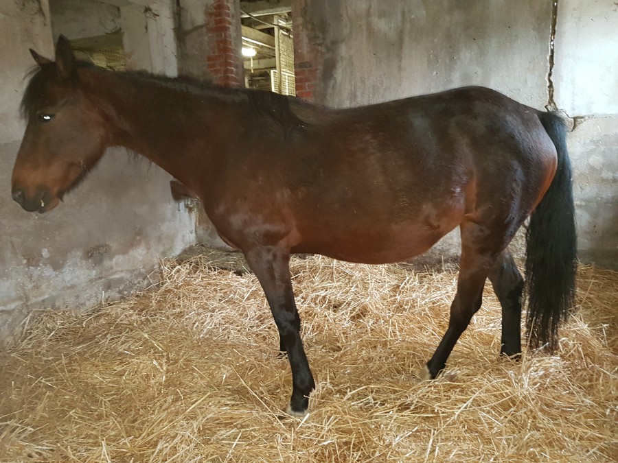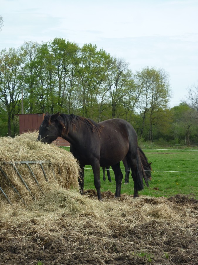 Voilà des photos datant de moins d'une semaine avant qu'elle pouline, c'est ça ce que moi j'appelle porter entre les côtes. C'est une jument qui n'est pas très large en temps normal, donc pour moi c'était très flagrant.