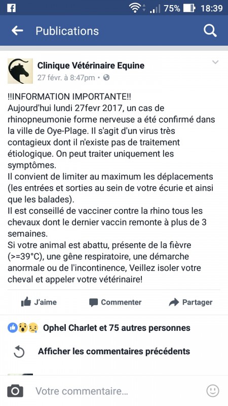 toukiii je l'ai vu aussi j'ai une amie qui est dans cette écurie ! Après perso je ne referais rien , je suis à 2 h environ de la bas dans la même région mais mes chevaux ne bougent pas de chez moi et je n'aurais probablement pas de chevaux en pension avant mai pour des saillies ( et pas encore sûr ) donc je reste sur mon protocole habituel pasque si on a besoin d'un vaccins toutes les 3 semaines pour que ça fonctionne c'est pas normal ( d'autant plus que il y a eu une rupture durant 1 an de se même vaccins sans vrai explication donc super encore une fois l'industrie pharmaceutique ... ) ! Courage en tout cas au membre de cette écurie