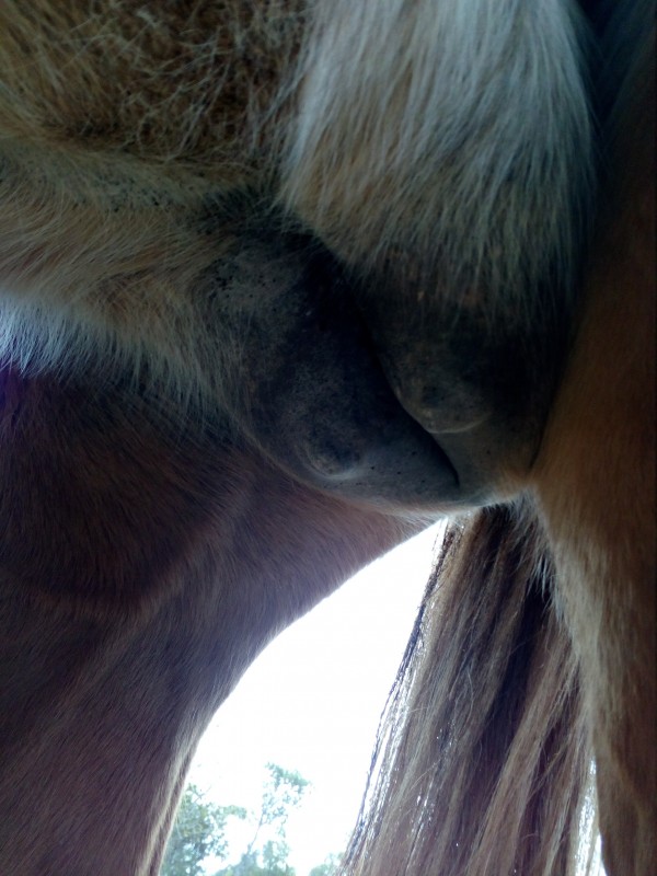 Mais la pour l'instant pour moi ça va , ça peu être simplement un oedème ou parfois ça gonfle quelques jours puis pouf plus rien parce que le poulain appuie au mauvais endroit !