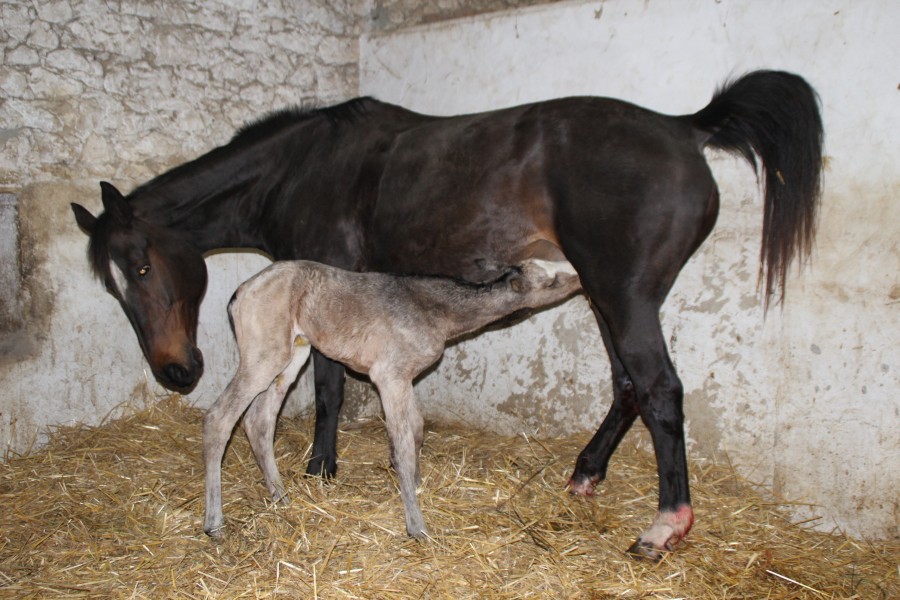 Helmut poulain bai sûrement futur gris, né le 03/04