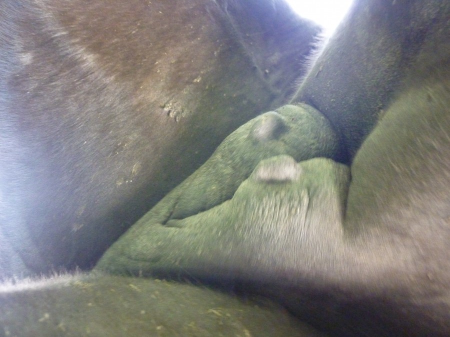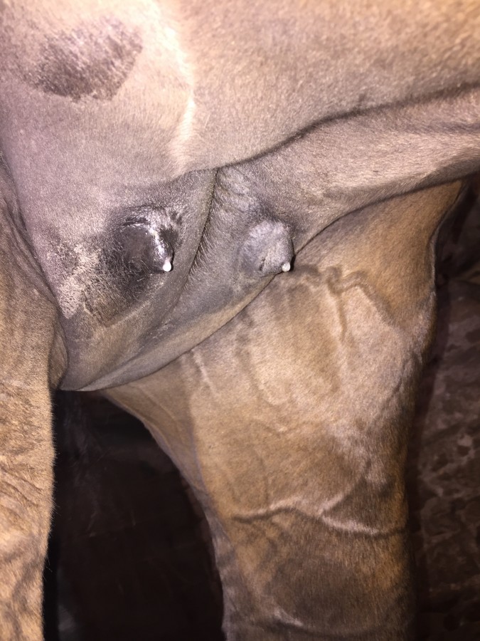 à 3 jours du poulinage (pas énormes mais les trayons ont changé de forme) :