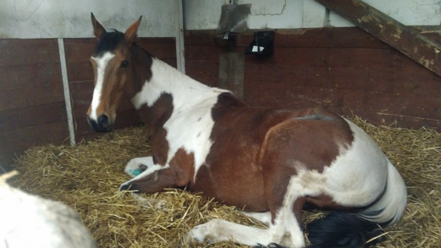 Hélite, pouliche pie minimal bai née le 10/04 à 2h30 Décédée le 14/04