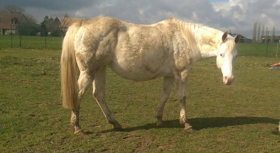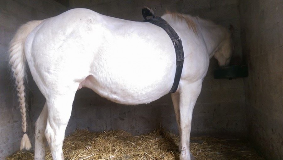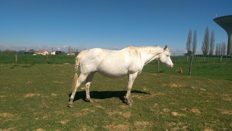 J'ai une photo de Fantasy la veille ou le jour du poulinage, je ne me rappelle plus. C'était l'année dernière. Elle qui avait un gros bidon, n'avait plus rien. Son ventre était complètement remonté et les flancs étaient pleins. Petite Blue faisait des petits mouvements qui se voyaient au niveau de la croupe, c'était énorme :p