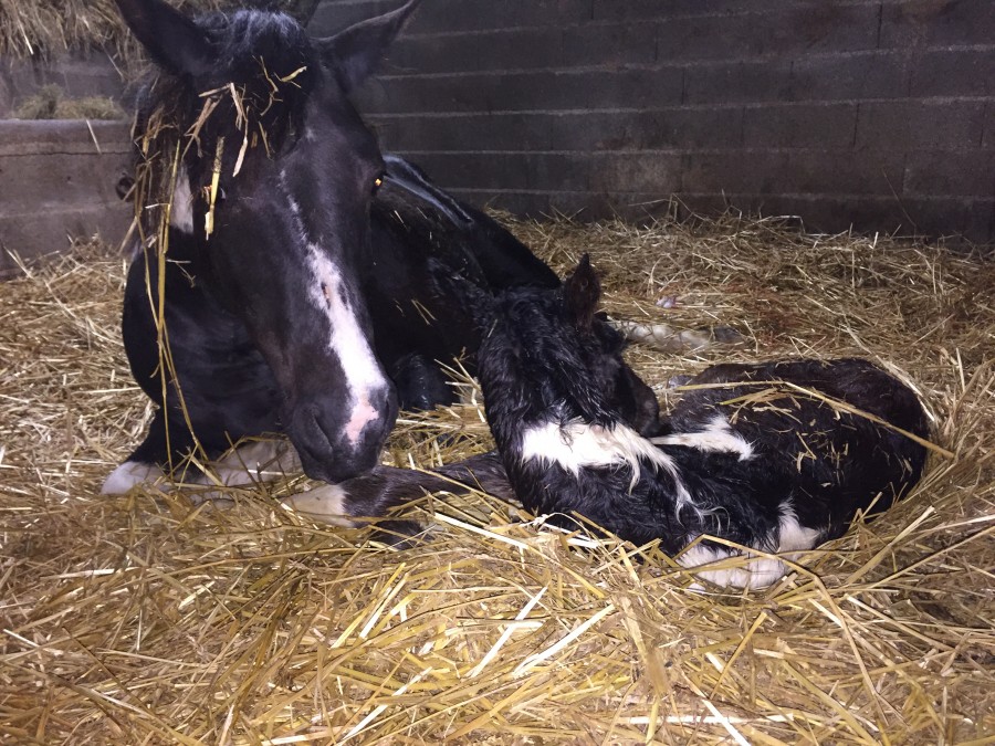 Den Bleiz MOONLIGHT pouliche Shire noire avec 4 balezanes née le 11/07 à 4h dans la baignoire