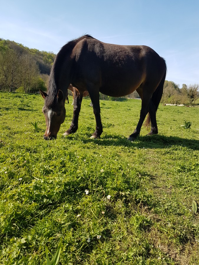 Ah voila j'ai enfin pu vous mettre une photo de la ponette que j'ai eu toute la gestation à la maison , qui est un peu ma ponette de coeur . Avec sa pouliche donc
