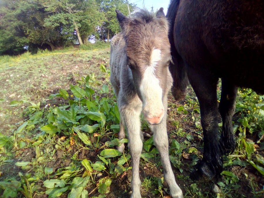 Den Bleiz MOONLIGHT pouliche Shire noire avec 4 balezanes née le 11/07 à 4h dans la baignoire