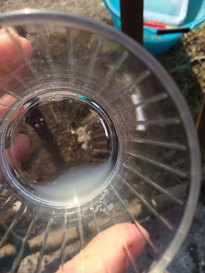 Et une petite photo de son lait d'hier soir , c'est la 1ère fois que je tire du lait à une jument donc je ne sais ce que vaut mon "analyse " mais je le trouve blanc , il est un peu collant!
