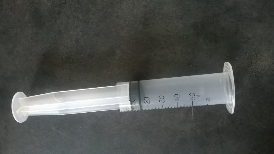 il suffit de couper l'embout ou on met l'aiguille....la on y met le"poussoir", et du coté ou normalement on enfonce le poussoir, on met le trayon de la jument, et on aspire....!