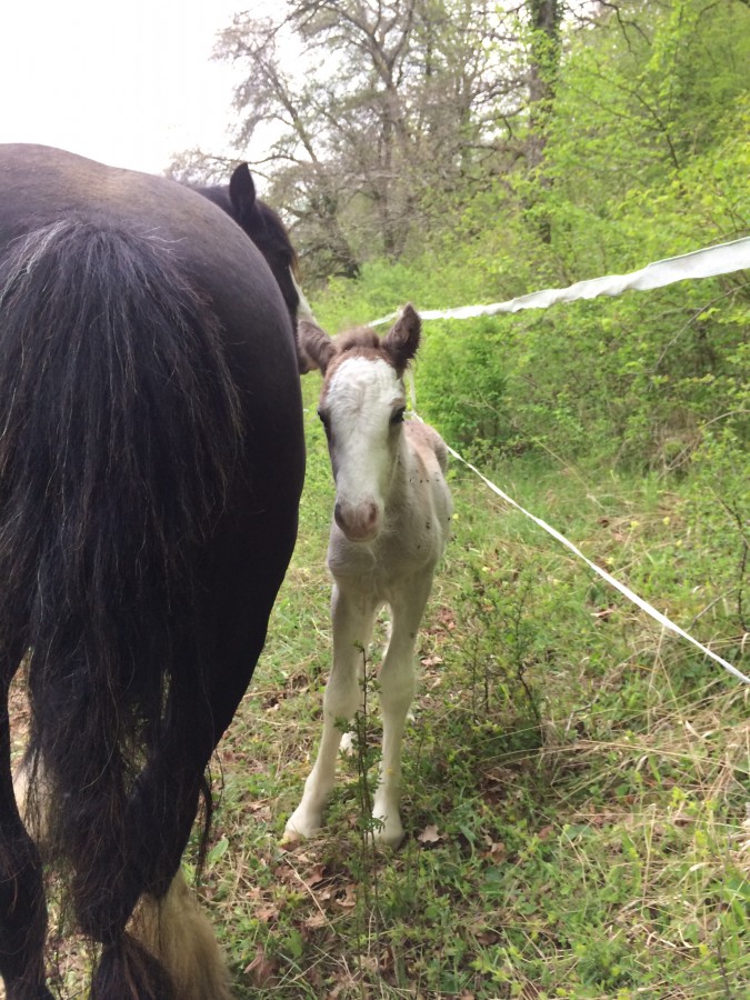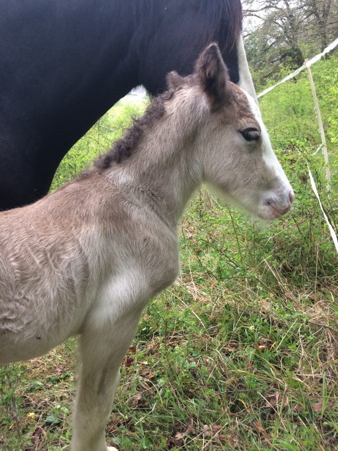 Hélite, pouliche pie minimal bai née le 10/04 à 2h30 Décédée le 14/04