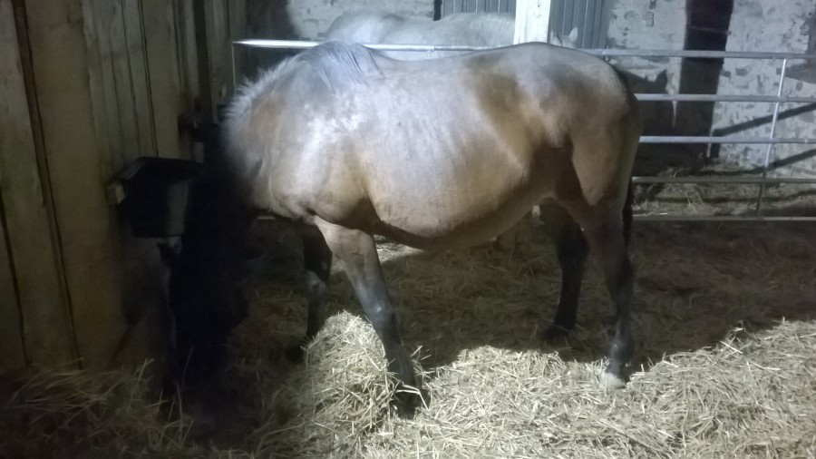 Ça me rappelle Fantasy l'année dernière. Elle cirait. Ceinture de poulinage la nuit, rien. Le matin je la mets dehors, rien. L'après-midi je vais désherber à l'autre bout du pré et un monsieur en camion s'arrête pour me dire "il y a votre jument qui est en train de veler !" Mdr.