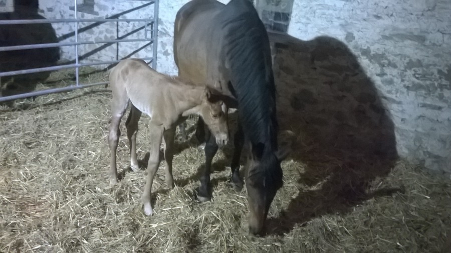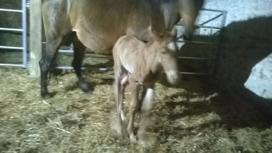 Après un début difficile pour têter, car la pouliche est super grande, la machine est lancée....Maman et bébé se portent bien! :)