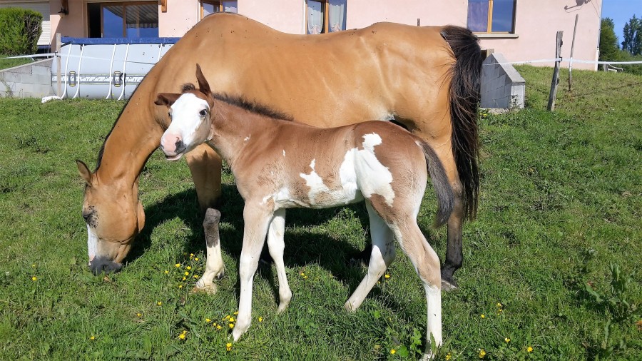 Hatchiko du fays AES, poulain champagne gold dun tobiano né le 09/04