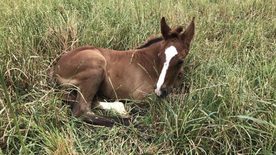 Héclat de la Féerie poulain alezan pie minimal né le 21/06 et décédé le 21/06