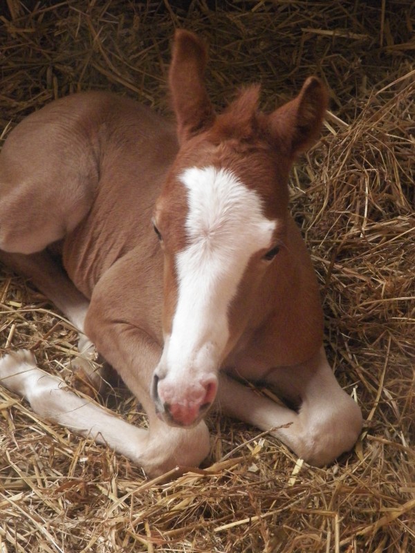 Hélite, pouliche pie minimal bai née le 10/04 à 2h30 Décédée le 14/04