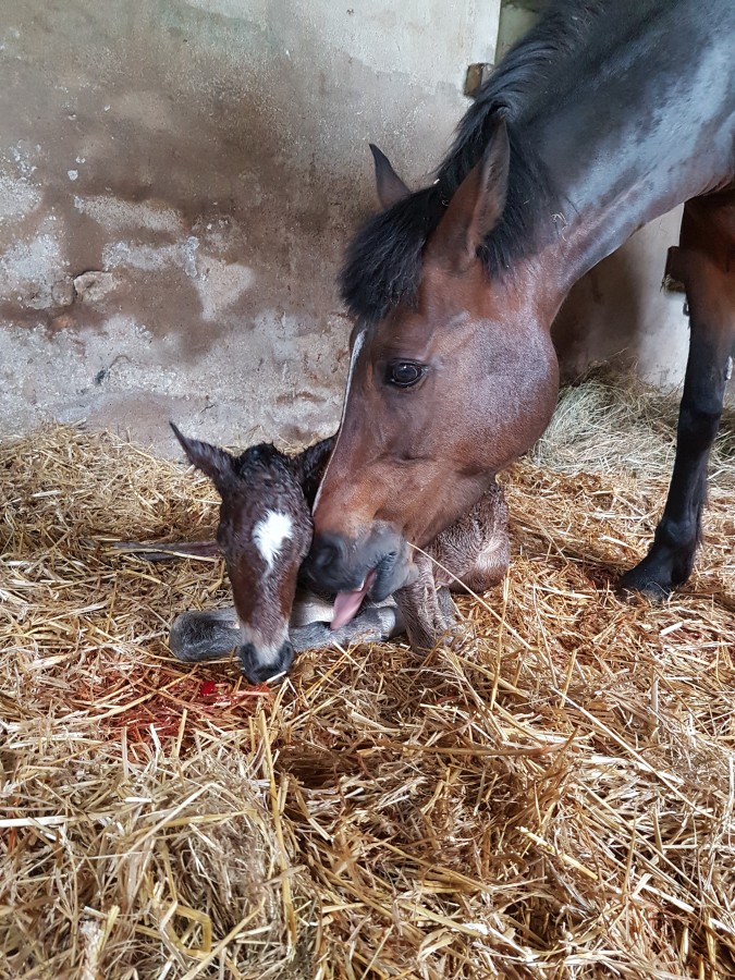 Hurlevent de Beaumon poulain bai brun né le 04/03 vers 2h du matin.