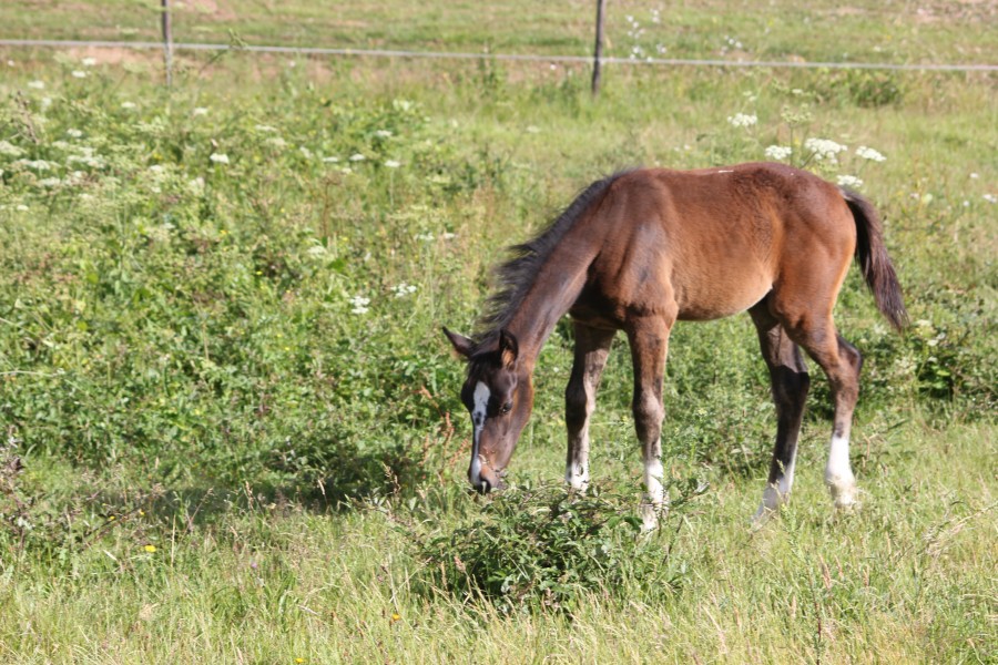 J'ai fait quelques photos, pas dingues. On voit quand même bien le morceau que c'est ! Dire que j'avais peur que Balou produise une crevette avec ma jument, ça semble parti pour être un costaud !