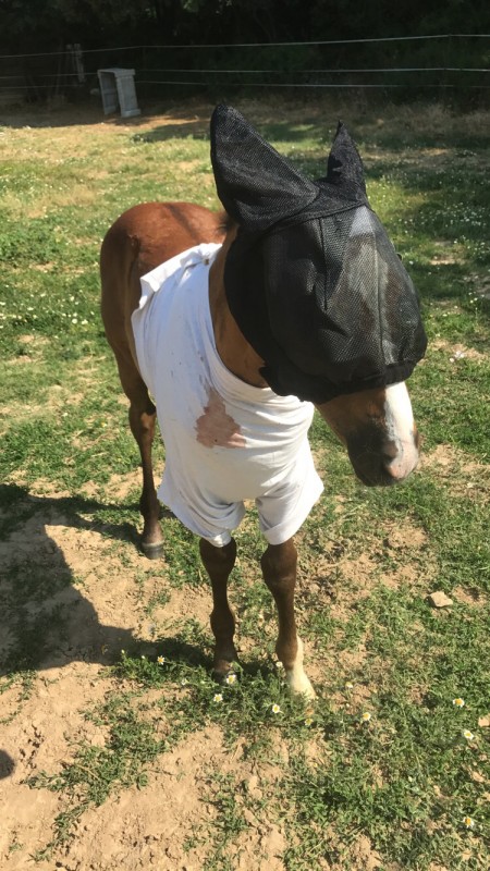 Comme quoi manipuler le plus possible peut vraiment aider... Hanoï s'est blessée, épaule ouverte et un épillet dans l'?il qui a provoqué un ulcère. Le veto a été étonnée par sa sagesse lors des soins, maintenant elle a une injection d'antibio par jour, je lui fais seule au pré elle bouge pas une oreille bref un amour de pouliche qui m'a fait une sacrée frayeur!