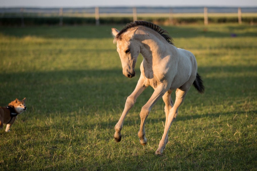 Hatchiko du fays AES, poulain champagne gold dun tobiano né le 09/04