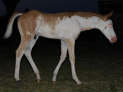 Hiamovi white color poulain pis tovero alezan né le 28/06 à 1h
