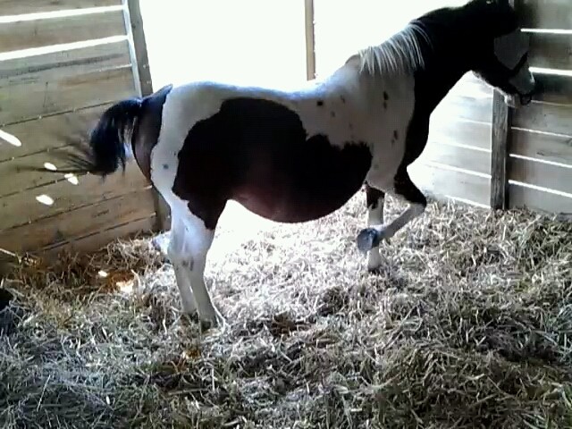 On est pas sûrs de la date du terme comme elle a passé un mois avec l'étalon, mais on pense autour du 1er aout... mais pour l'instant on est pas stressés