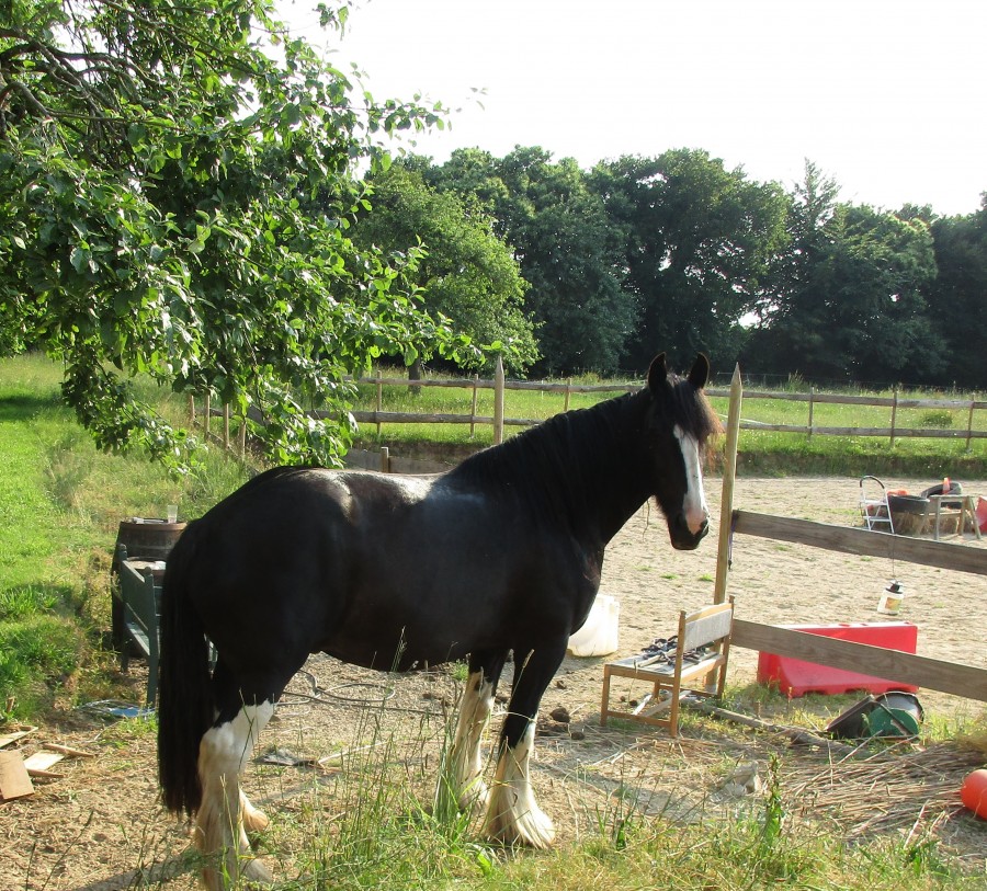 Den Bleiz MOONLIGHT pouliche Shire noire avec 4 balezanes née le 11/07 à 4h dans la baignoire