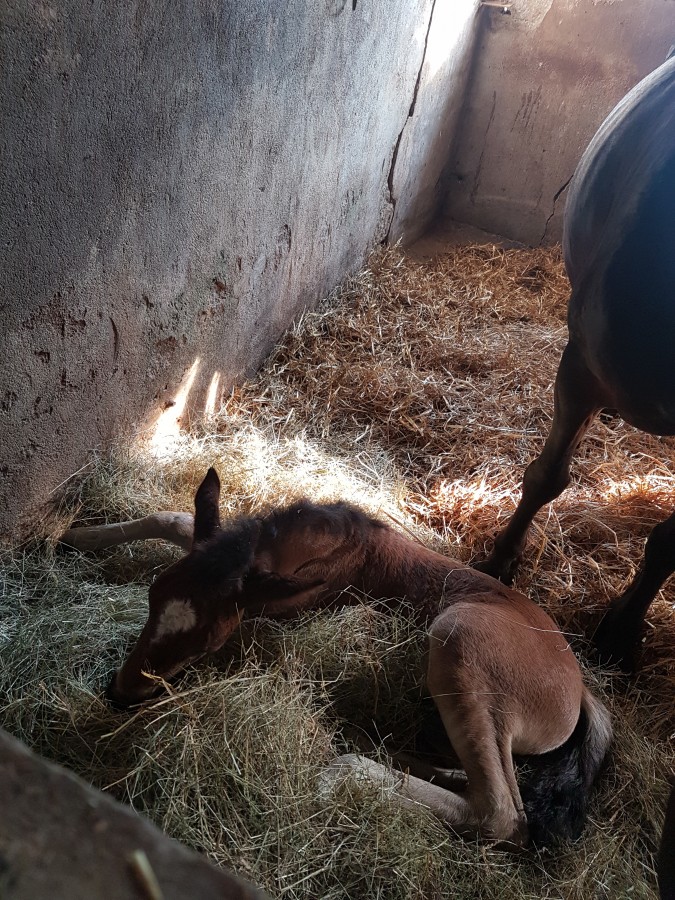C'est du coup assez tristement que je t'annonce la naissance de notre poulain, né le 21 juin petit mâle alezan (peut être futur gris)