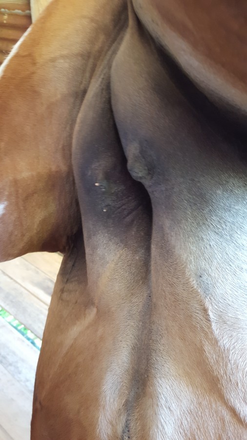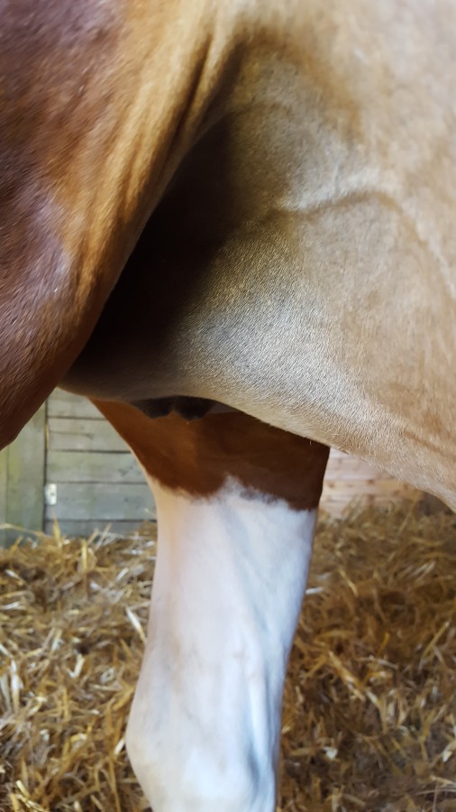 Elle était très inconfortable cette nuit, s'appuyait les fesses contre le box, ses mamelles ont doublé de volume et commençait à goutter à 3h.