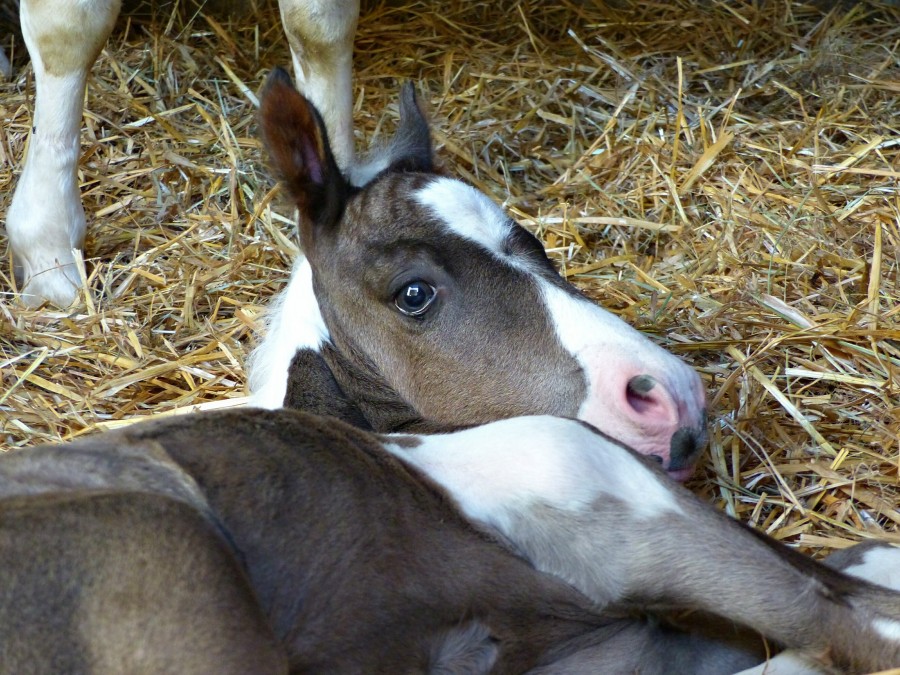 Hélite, pouliche pie minimal bai née le 10/04 à 2h30 Décédée le 14/04
