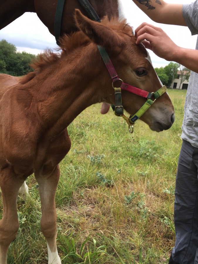 Pour aider les poulains un peu timides, il faut trouver leur point de gratouilles de folie et là ils comprennent très vite que humain = trop de bonheur