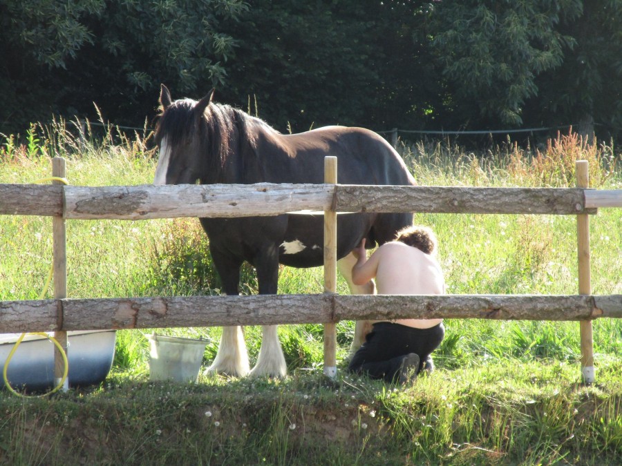 Il y a deux ans on à récupéré une jument suitée maltraité et suité d'une pouliche de mois , la pouliche avait jamais vu l'homme, la mère si mais n'en gardait pas très bon souvenir, donc hyper galère, on ne pouvait pas les approcher au pré