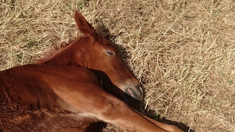 Hélite, pouliche pie minimal bai née le 10/04 à 2h30 Décédée le 14/04