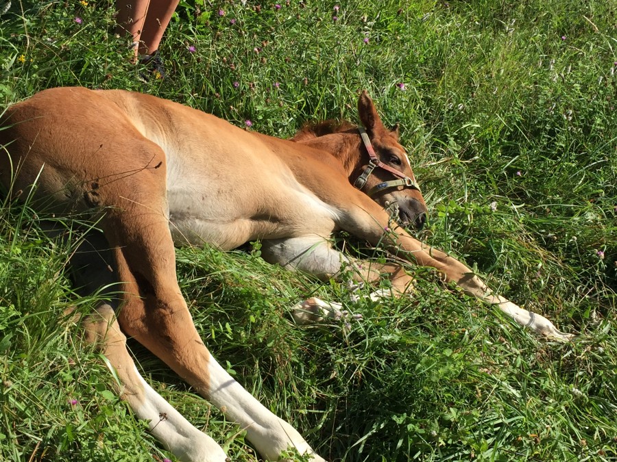 Hélite, pouliche pie minimal bai née le 10/04 à 2h30 Décédée le 14/04