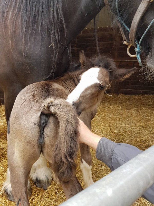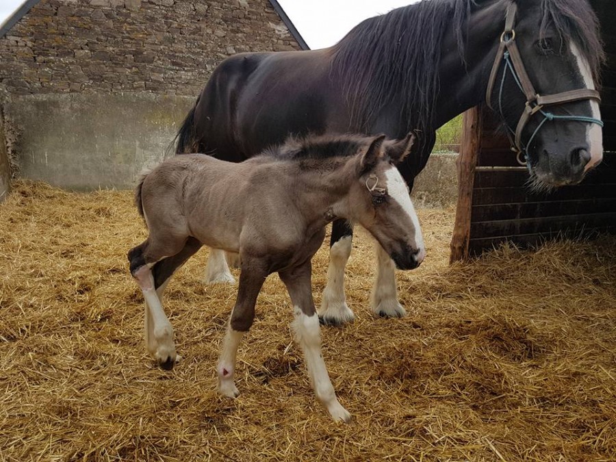 Den Bleiz MOONLIGHT pouliche Shire noire avec 4 balezanes née le 11/07 à 4h dans la baignoire