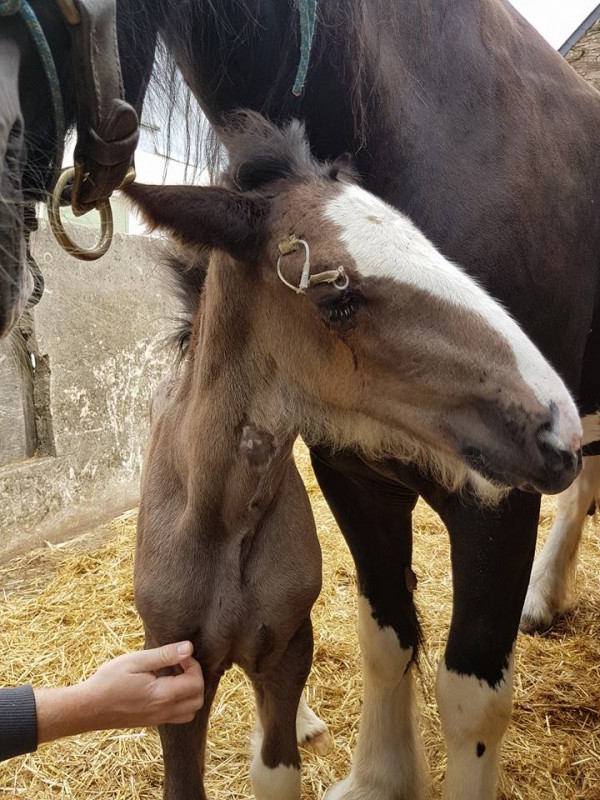 Hélite, pouliche pie minimal bai née le 10/04 à 2h30 Décédée le 14/04