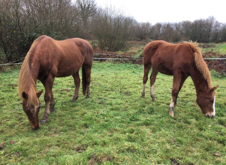 Ceci dit j'essaye de temps en temps de les séparer un peu , quand je veux faire les soins de l'une ou de l'autre , et ça se passe plutôt bien ! De toute façon Héméra passe son temps avec mon hongre , elle ne revient vers sa mère que pour téter... ils se sont bien trouvés ces deux là !