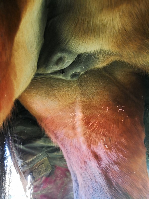 Bon j'ai un petit soucis... Miss Nova est HYPER sensible des mamelles aujourd'hui... Elle est passé à a l'herbe depuis hier et a reprit une vrai ration depuis 2 jours (3l de reverdy) Elle est aussi enrhumé (je vais commencé un petit traitement aujourd'hui)