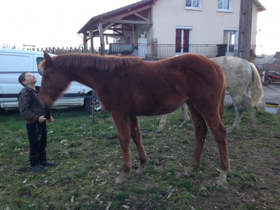 ça fait bien longtemps que je n'ai rien posté.... je consulte mais pas bcp de temps avec l'achat de ma nouvelle jument. mais bébé Helmut grandi bien le voici à bientôt 11 mois (le 4 mars)... il est adorable et fait tout très bien : pansage, donner les pieds, marcher en longe, tient à l'attache, embarquer et descendre en marche avant et arrière une crème de poulain... j'en suis totalement amoureux...