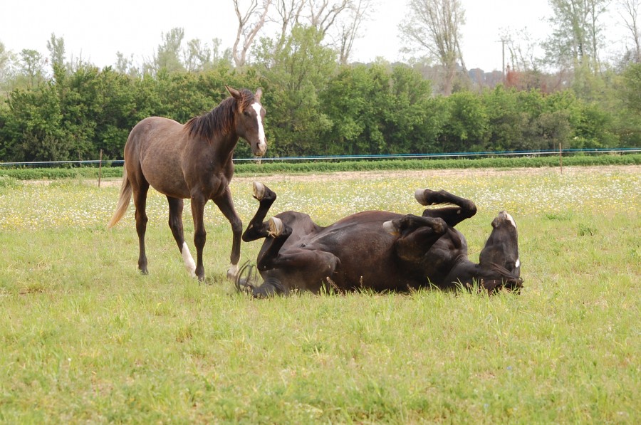 alors des nouvelles, le sevrage c'est très bien passé (c'était lundi). Goleta n'a même pas hennit une fois lorsque je l'ai retiré du pré! Harley quand à lui a bien galopé, mais le lendemain il n'avait aucune trace de traspiration!