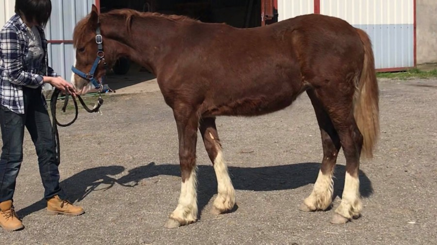 Hélite, pouliche pie minimal bai née le 10/04 à 2h30 Décédée le 14/04
