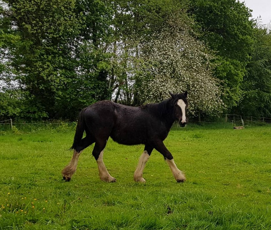 Den Bleiz MOONLIGHT pouliche Shire noire avec 4 balezanes née le 11/07 à 4h dans la baignoire