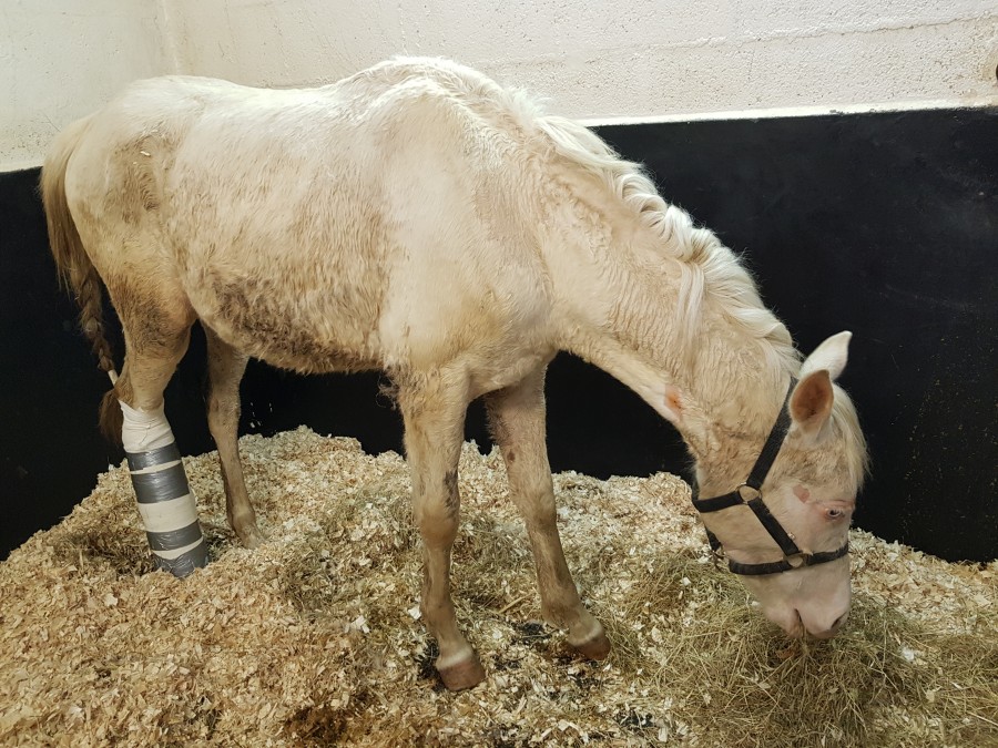 bébé a une vie atypique puisque grièvement blessé il y a 1 mois , il est au box pour environ 1 an .